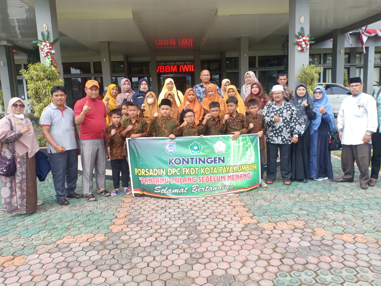 Pelepasan kontingen Porsadin Kota Payakumbuh dilakukan Walikota Payakumbuh Riza Falepi yang diwakili Kabag Kesra Setdako Irwan Suwandi. Pelepasan dilakukan di halaman Kantor Walikota Payakumbuh pada Sabtu (03/09/22). Turut hadir melepas, Kakan Kemenag diwakili Seksi PQ-Pontren Hasnul Fakri, Ketua FKDT Kota Payakumbuh Eri Burhan dan pelatih serta orang tua siswa.