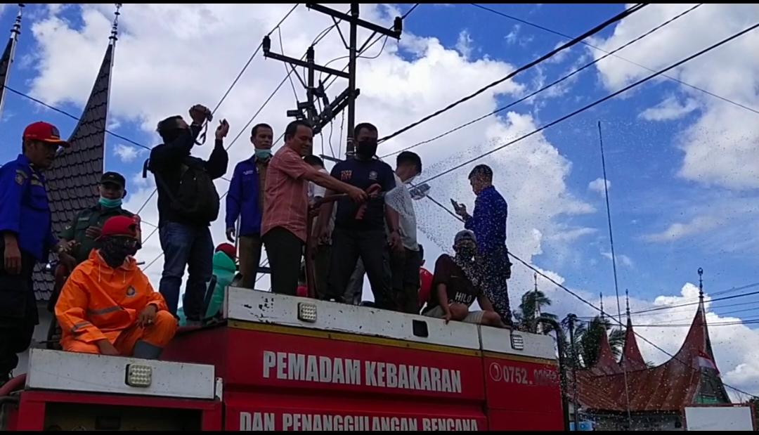 Anggota komisi C DPRD Payakumbuh, Fahlevi di Payakumbuh, Senin, mengatakan 15 kubik disinfektan tersebut disemprotkan di Kelurahan Balai Jariang menggunakan mobil pemadam kebakaran daerah setempat,senin 30 maret 2020.