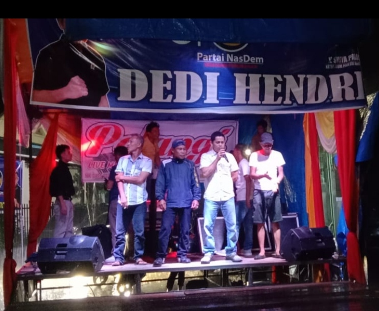 Sementara Dedi Hendri yang merupakan bacaleg dari Partai NasDem menyampaikan bahwa ia sangat berterimakasih telah di undang secara khusus oleh pemuda setempat dalam.kegiatan hiburan ini.