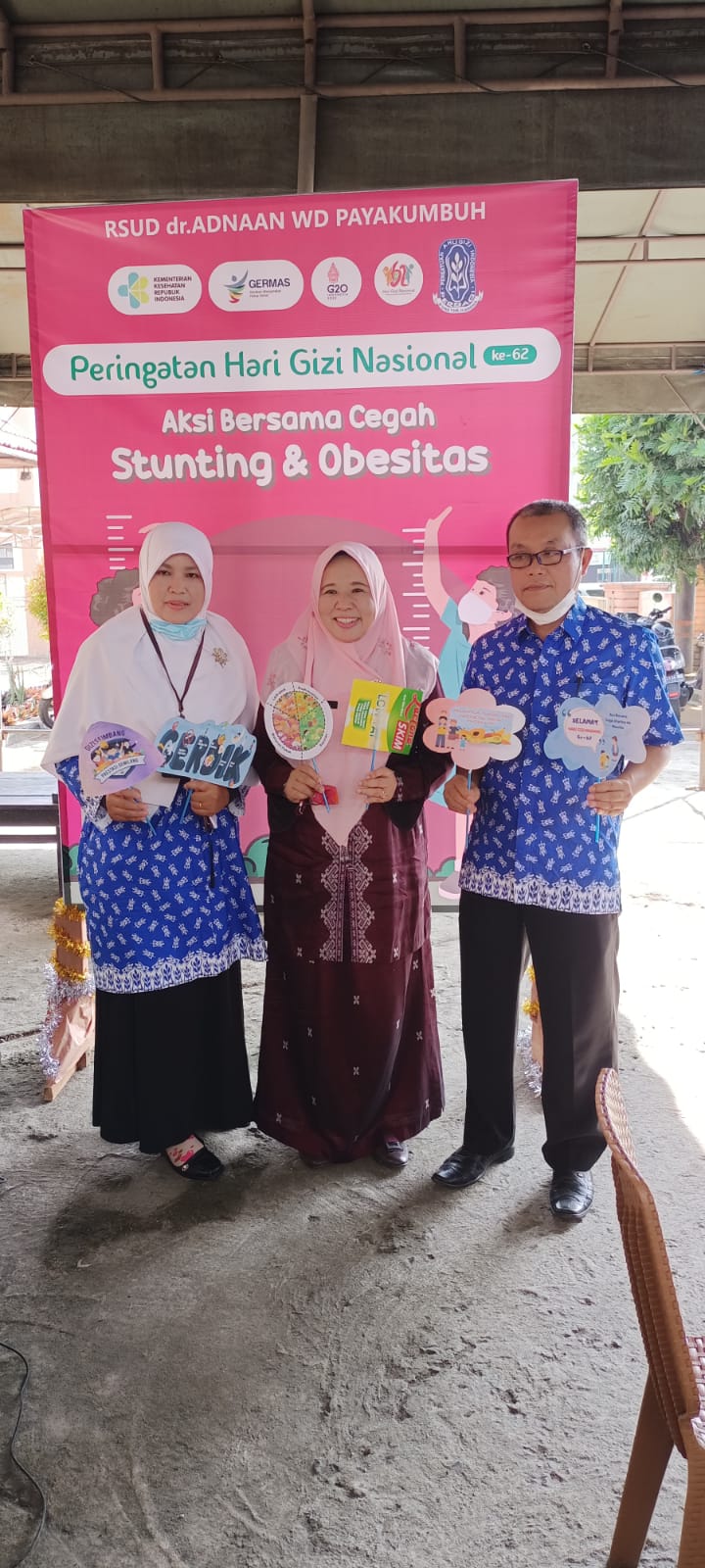 Payakumbuh-Dalam memeriahkan peringatan Hari Gizi Nasional (HGN) ke 62 tahun 2021, Rumah Sakit Umum Daerah (RSUD) dr Adnaan WD Kota Payakumbuh menyatakan komitmen untuk terus melawan stunting dengan menggelar beberapa kegiatan di lingkungan rumah sakit.