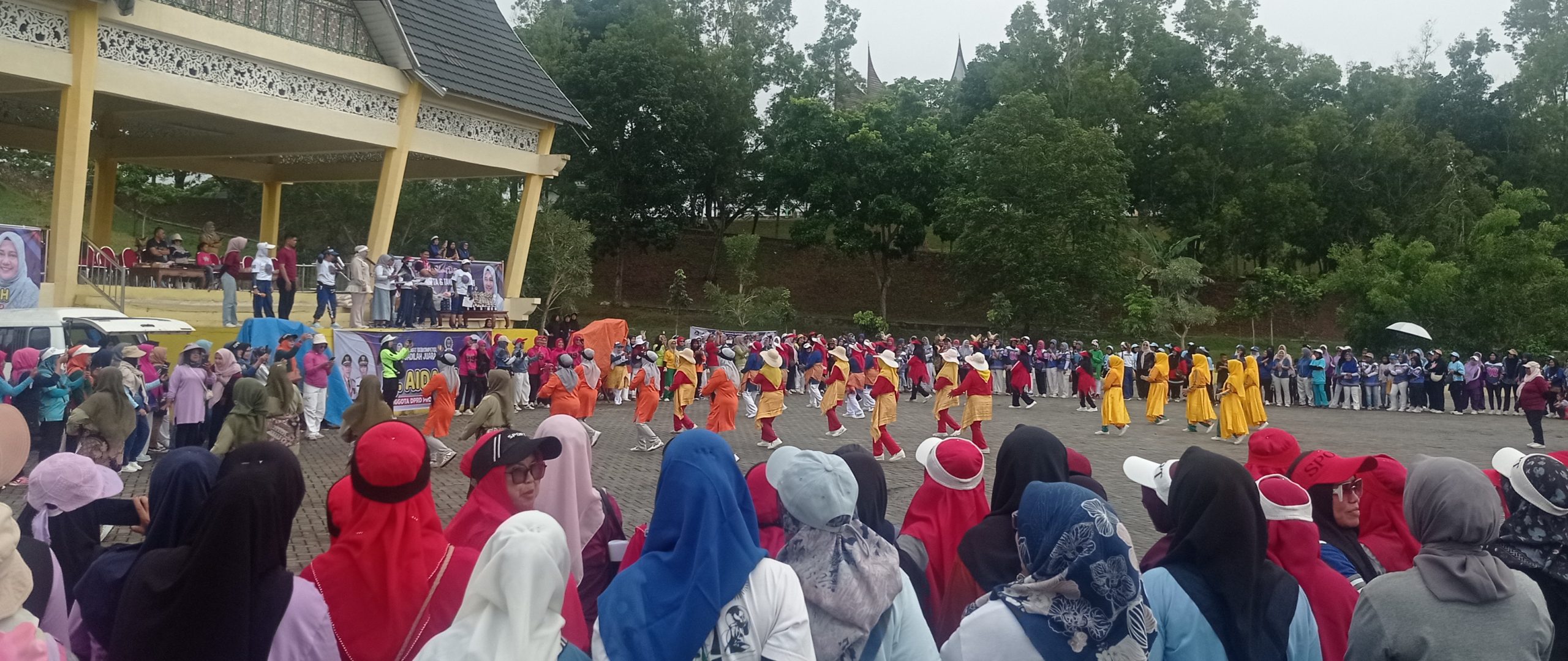 Hj. Aida dan Dispora Sumbar Apresiasi Ribuan Warga yang Meriahkan Senam Massal di Limapuluh Kota.