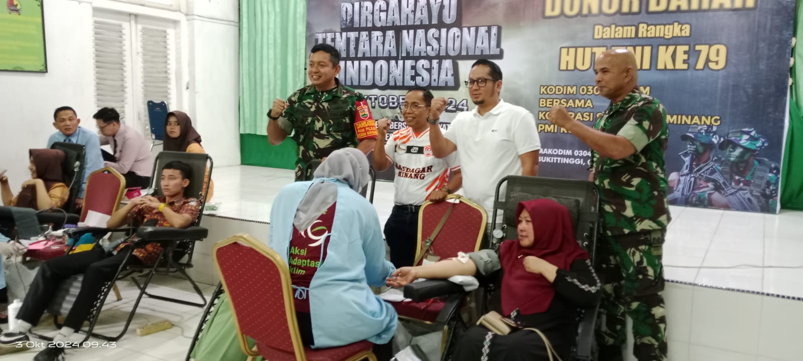 HUT TNI Ke 79, Kodim 0304/Agam Kolaborasi Adakan Donor Darah Di Kota Bukittinggi