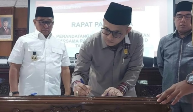 Bukittinggi, Payakumbuhpos.id, — Pemerintah bersama DPRD Bukittinggi, tandatangani kesepakatan Rancangan Kebijakan Umum Anggaran (KUA) Prioritas Plafon Anggaran Sementara (PPAS) APBD 2026. Penandatanganan kesepakatan dilaksanakan dalam rapat paripurna, di Gedung DPRD, Senin (03/11).