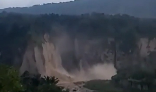 Video longsoran tebing setinggi ratusan meter itu viral di media sosial.