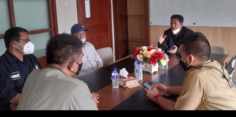 Tim Kabar Media Group berbincang dengan Sekretaris Dinas Penanaman Modal Mailiriandi M.Si, dan Kasubag Program Iqbal S.IP serta Kasi Pengembangan Promosi Honda Rizal di lantai ll Gedung Menara Lancang Kuning, Jalan Sudirman Kota Pekanbaru, Selasa siang (14/12) Foto Deofebro